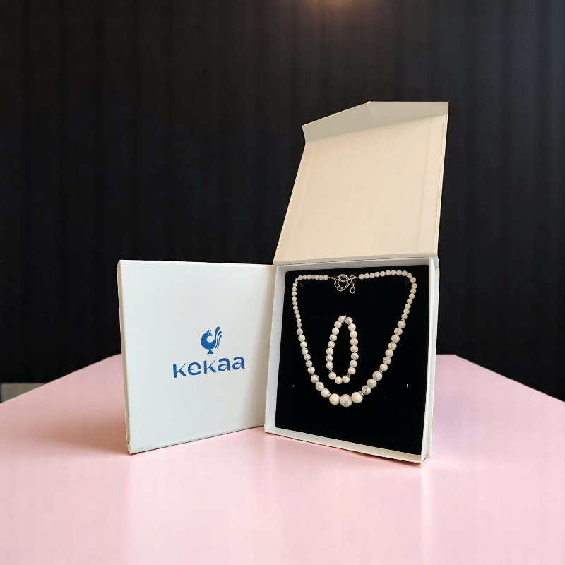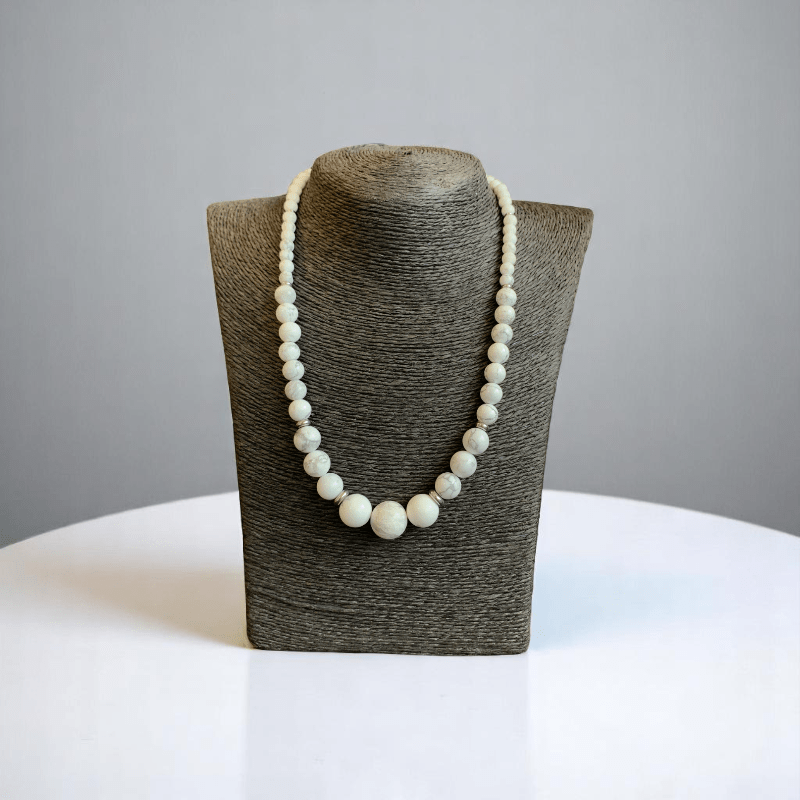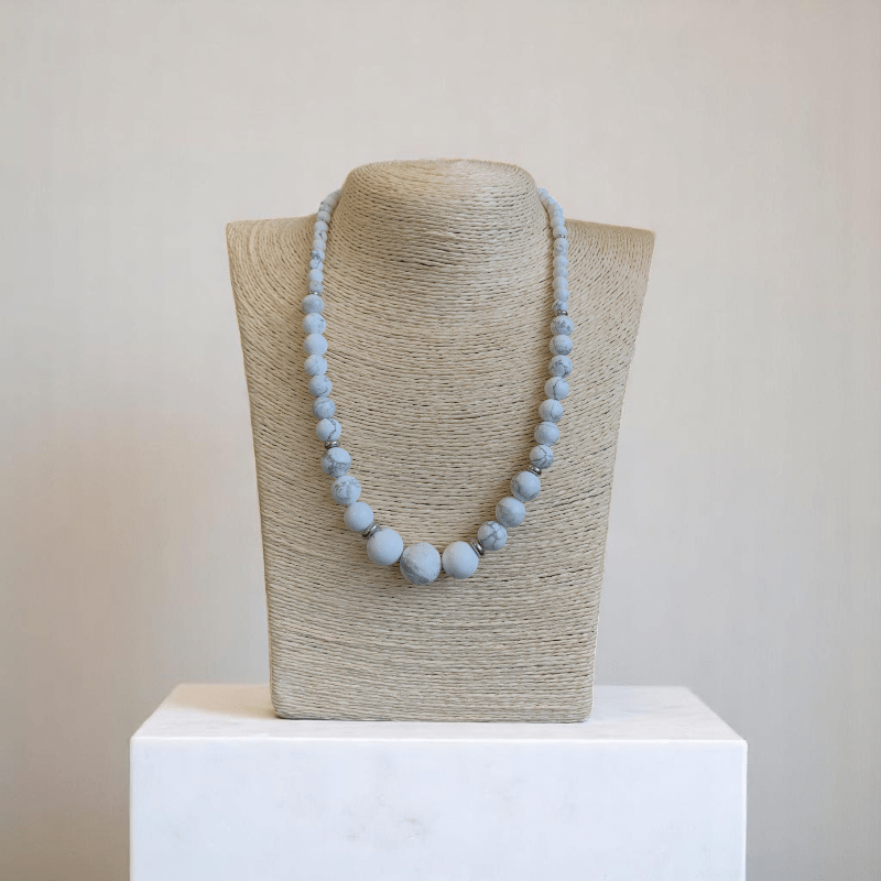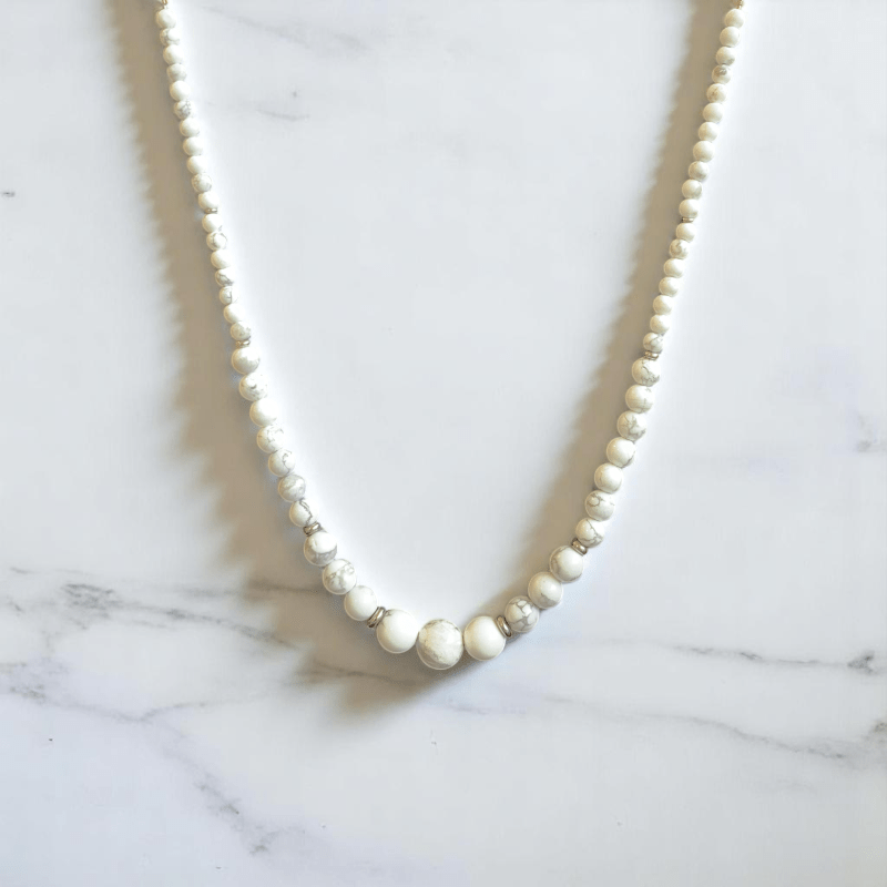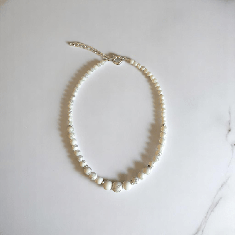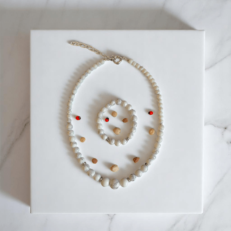 - The necklace is beautifully designed with Howlite stones, paired with a matching bracelet that creates a harmonious, coordinated look.