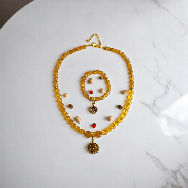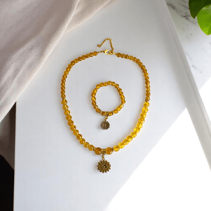 Golden Glow Set | Yellow Citrine Stone - For Women | Includes: Necklace, Bracelet