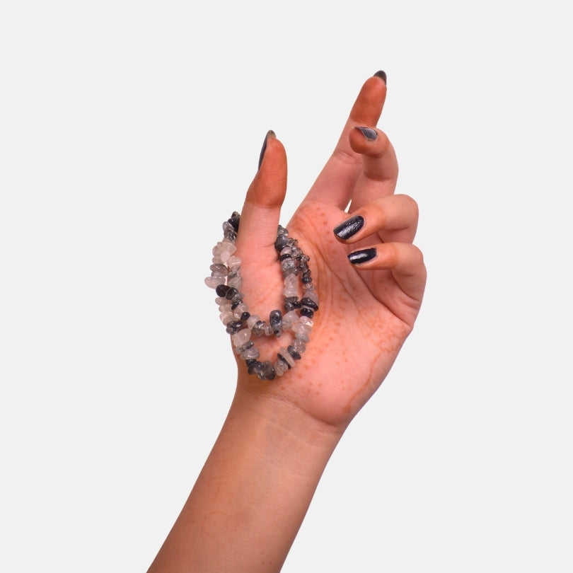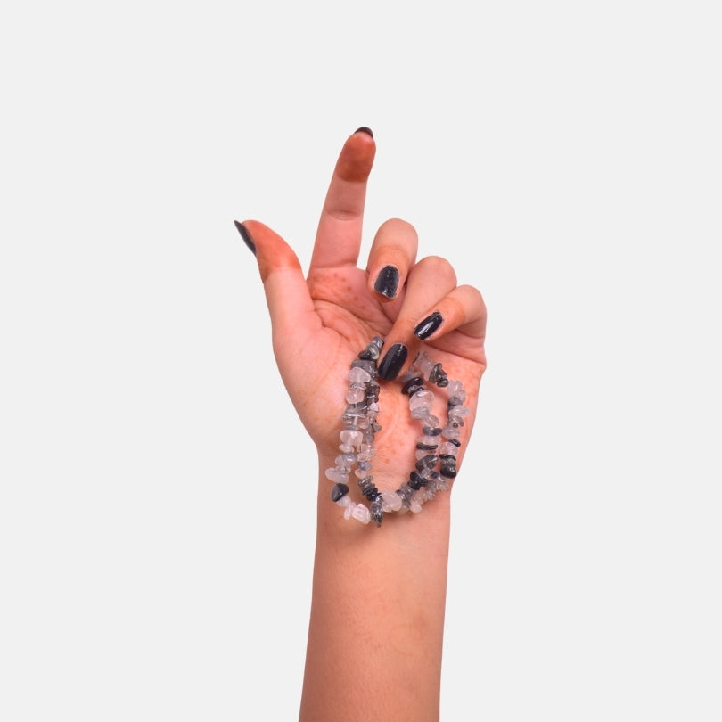 - 🖤 Black Rutile Quartz Chips Bracelet – Crafted with natural black rutile quartz stone chips, showcasing striking needle-like inclusions for a raw yet refined aesthetic.