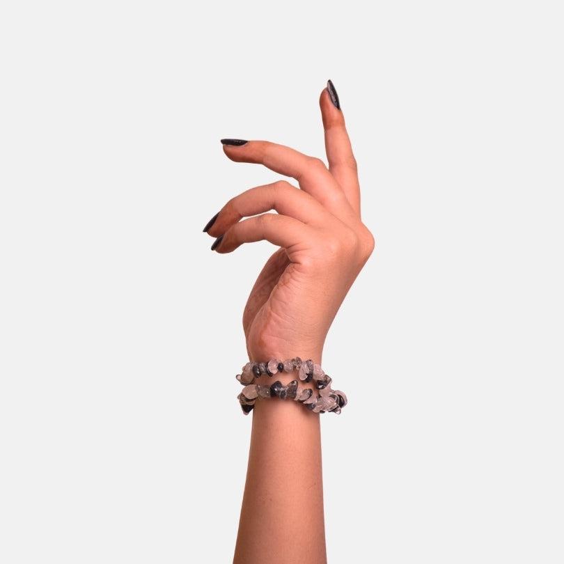 Youthful Gleam Bracelet | Black Rutile Quartz Chips – For Women | Includes: Bracelet
